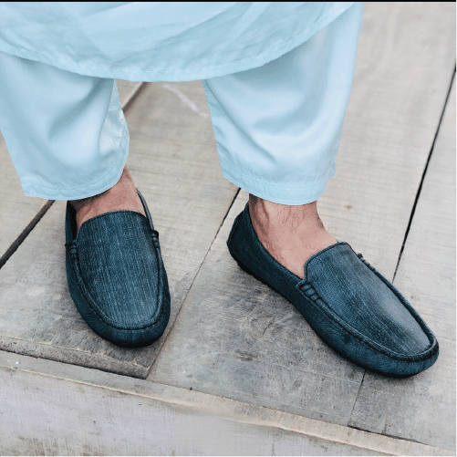 - Genuine Leather with Denim Texture: The shoe is made of real leather, but treated to have the look and feel of denim.